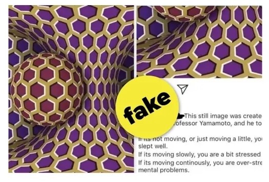 일본 신경과 전문의가 만든 착시 현상이 시청자의 스트레스 수준을 측정할 수 있다는 주장은 우리 연궁에서 뒷받침되지 않아 거짓으로 평가 합니다. 환상은 의사가 아닌 예술가에 의해 만들어 졌으며 스트레스 수준을 측정하는 입증된 능력이 없다고 합니다.