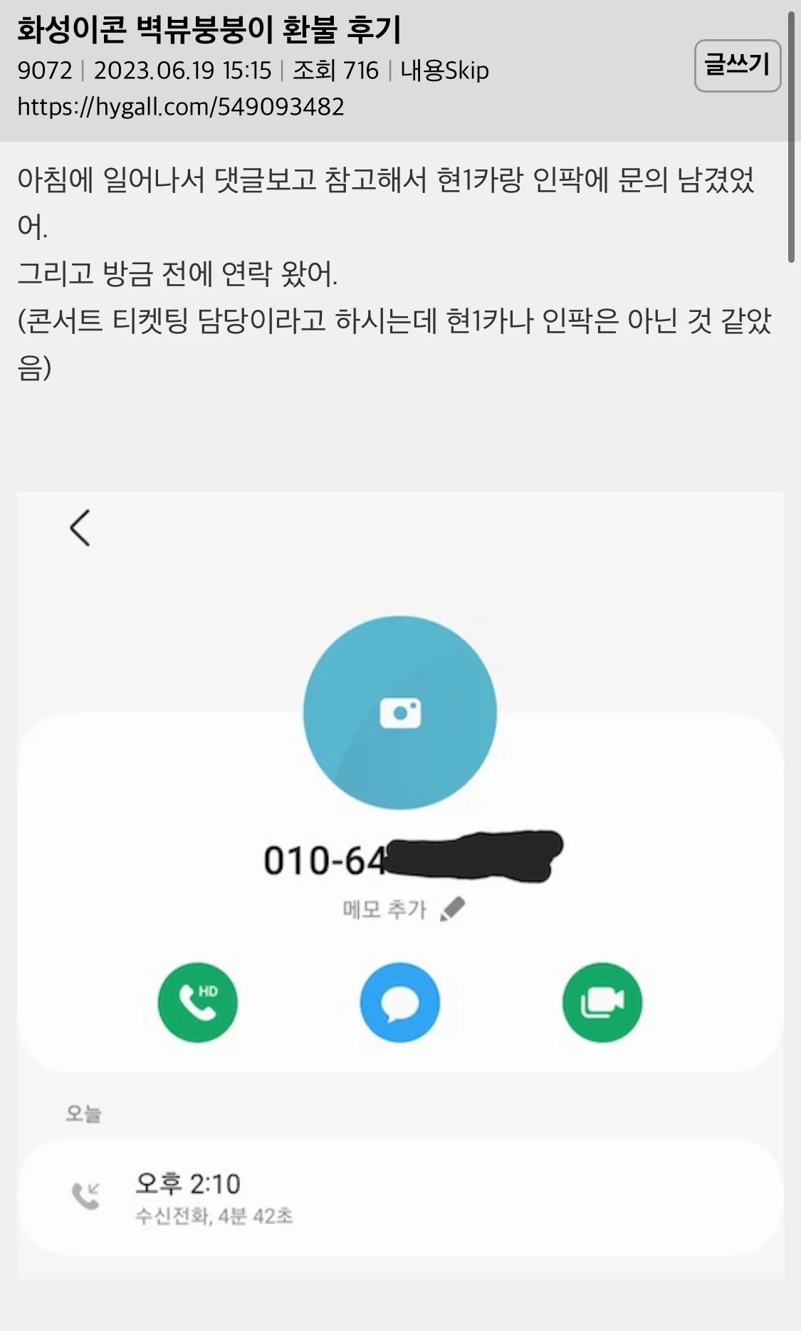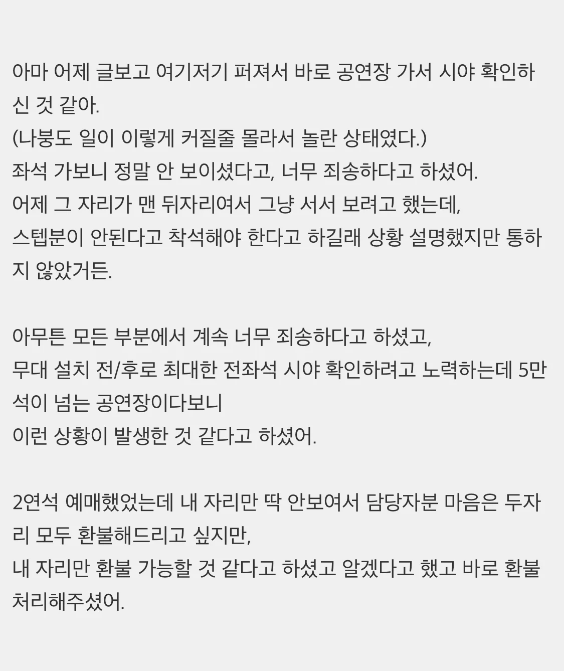 실제 공연장에서 확인하니 안보였다며 죄송하다고 함