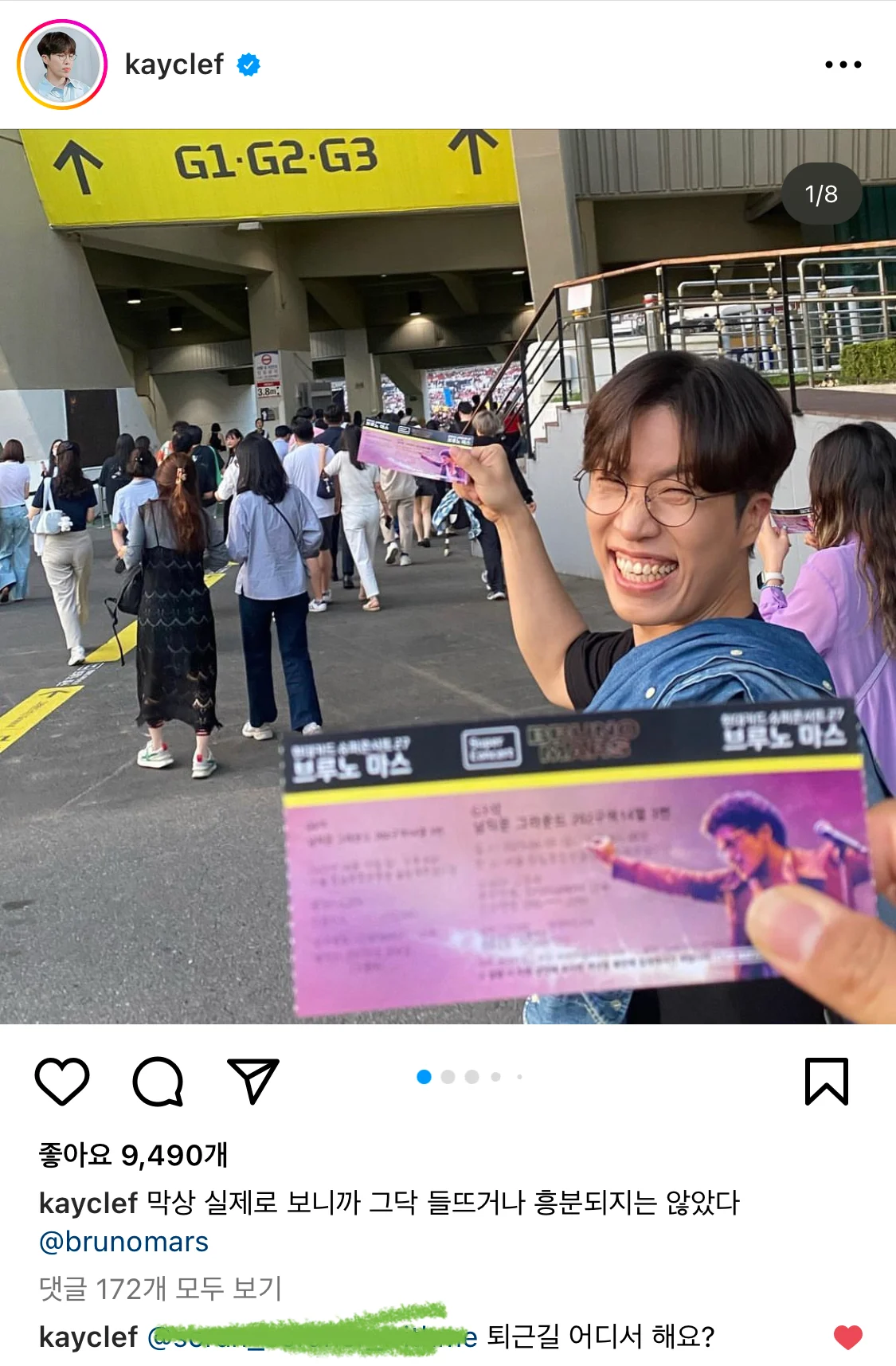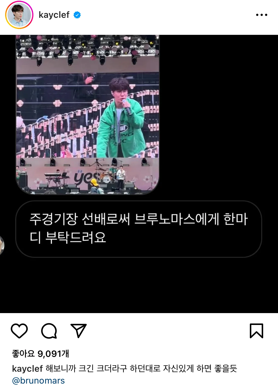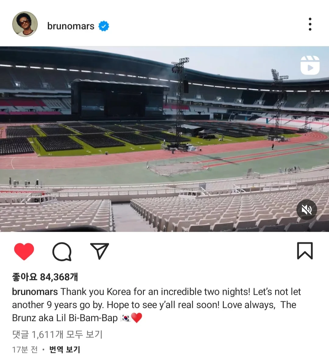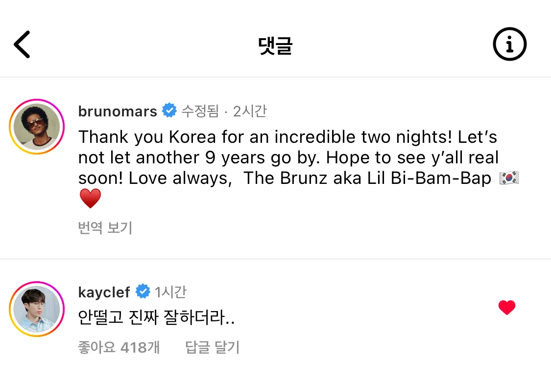 현대카드 콘서트 후기 올린 브루노마스 인스타