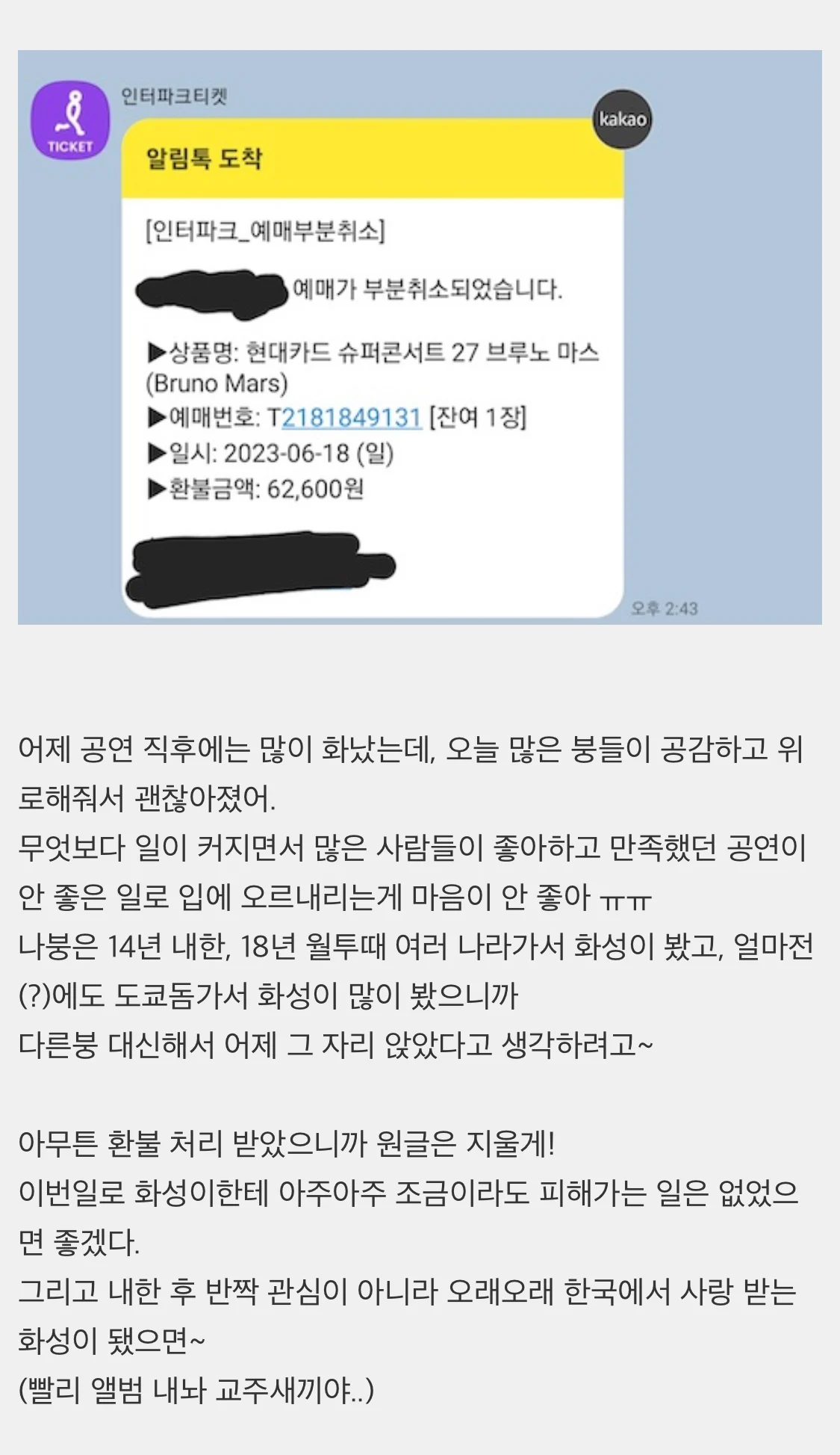 현카 브루노마스콘서트 이상한 벽 구석탱이 좌석 환불 후기